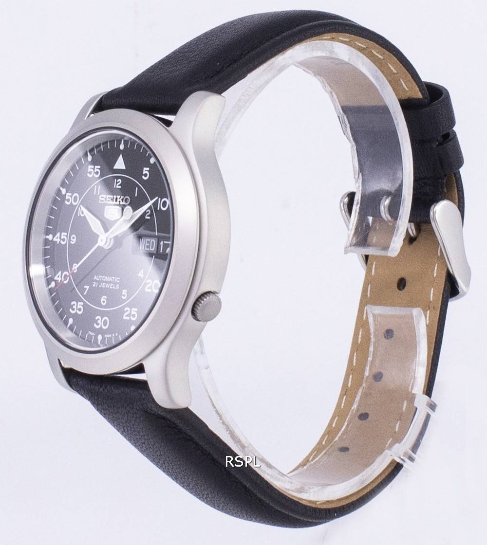 Seiko 5 militärische SNK809K2-SS3 automatische schwarzes Leder Armband Herrenuhr
