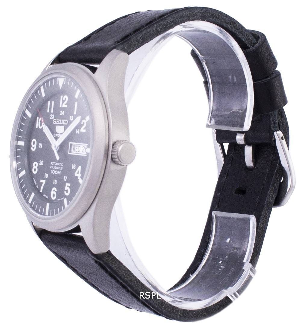 Seiko 5 Sport Automatic Japan Made Ratio Schwarz Leder SNZG09J1-LS8 Herrenuhr
