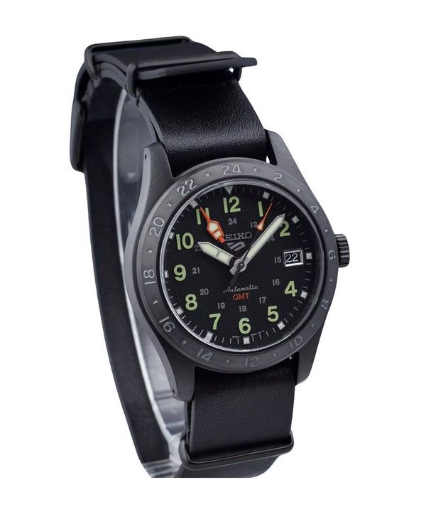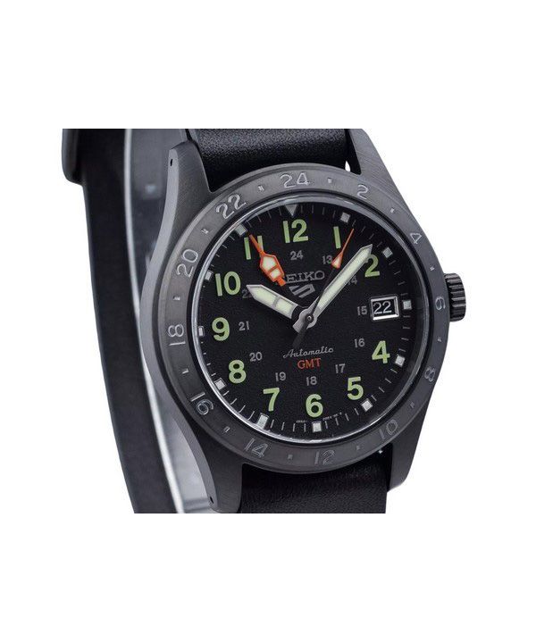 Seiko 5 Sports GMT Field Series Lederarmband schwarzes Zifferblatt Automatik SSK025K1 100M Herrenuhr