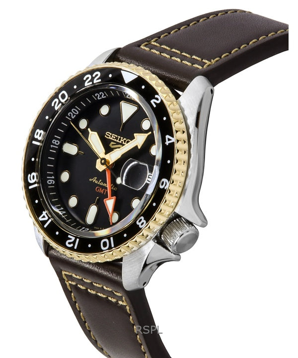 Seiko 5 Sports SKX GMT Lederarmband Braunes Zifferblatt Automatik SSK036K1 100M Herrenuhr