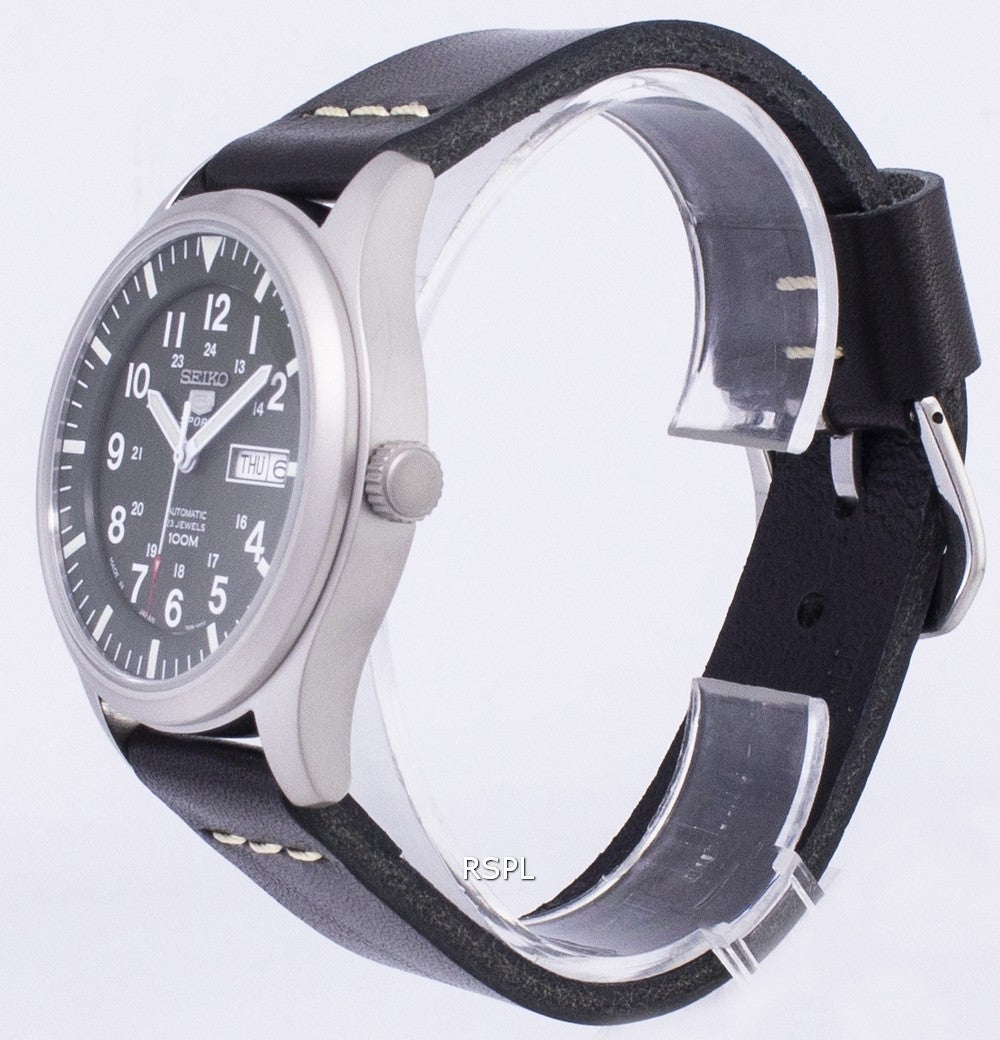 Seiko 5 Sports SNZG09J1-LS14 Herrenuhr aus schwarzem Lederarmband