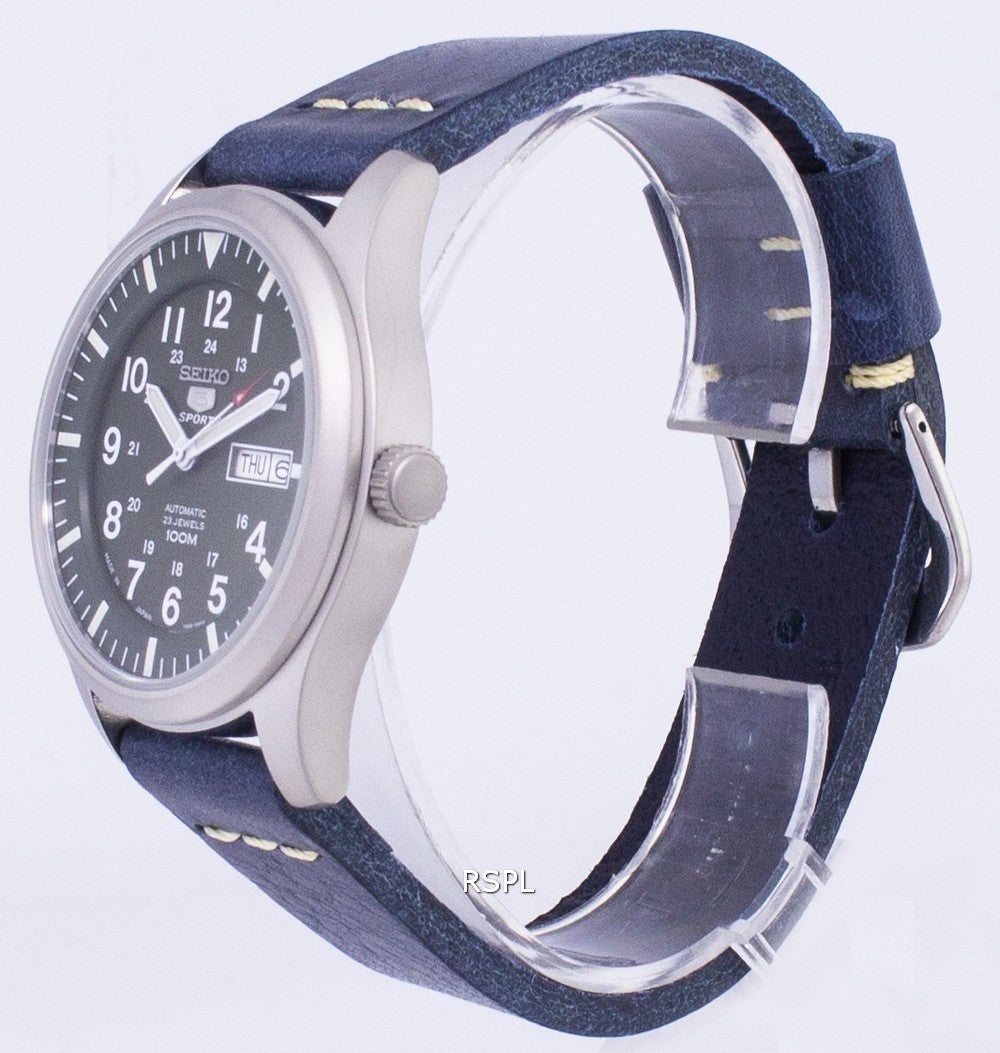 Seiko 5 Sports SNZG09J1-LS15 Herrenuhr aus dunkelblauem Lederarmband