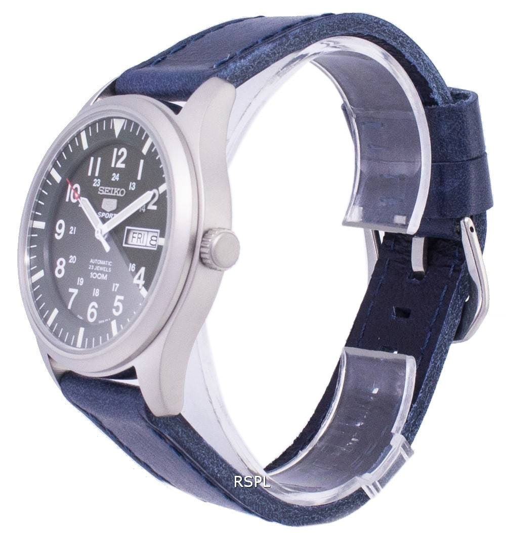 Seiko 5 Sports SNZG09K1 LS13 automatische dunkel blau Leder Armband Herrenuhr
