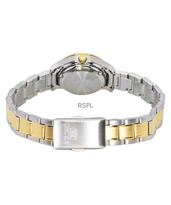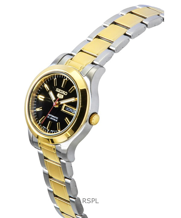Seiko 5 Zweifarbige Edelstahl-Armbanduhr mit schwarzem Zifferblatt und 21 Steinen, Automatik, SYMD94K1, Damenuhr