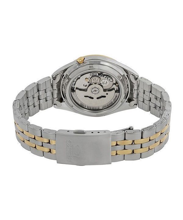 Seiko 5 zweifarbige Edelstahl-Automatikuhr mit weißem Zifferblatt und 21 Steinen SNKL24K1