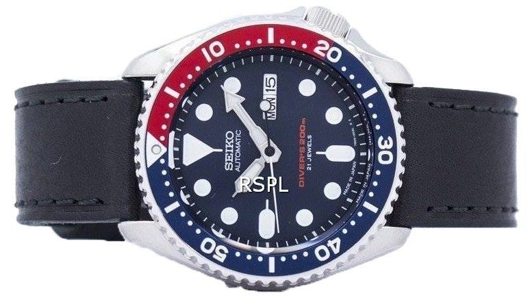 Seiko Automatik Diver Verhältnis aus schwarzem Leder SKX009J1-LS8 200M Herrenuhr