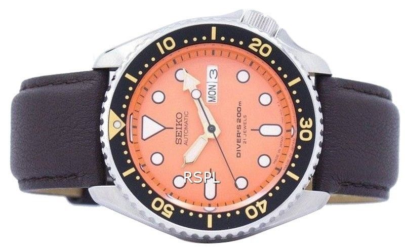 Seiko Automatik Diver Verhältnis dunkelbraunes Leder SKX011J1-LS11 200M Herrenuhr