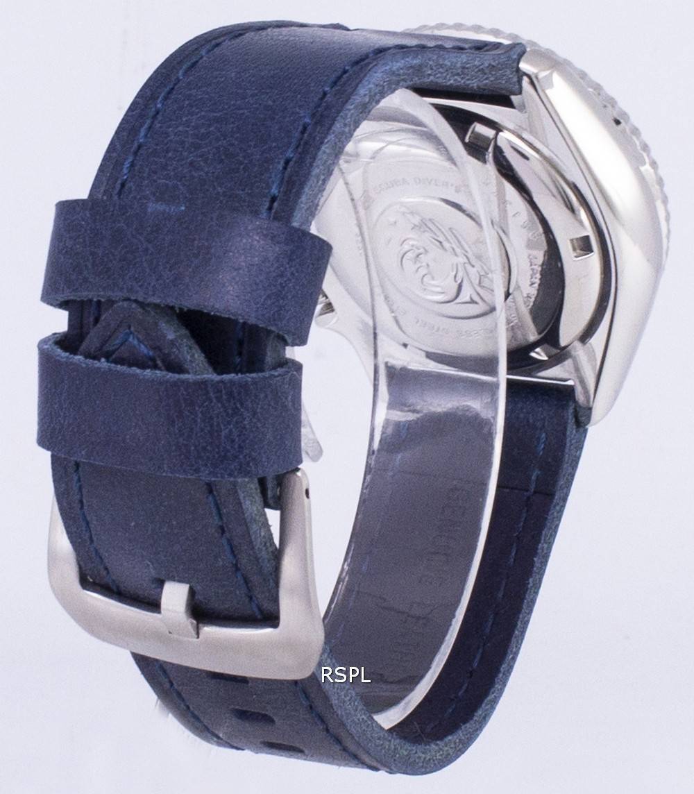 Seiko Automatik SKX009J1 LS13 Diver 200M dunkel blau Leder Armband Herrenuhr