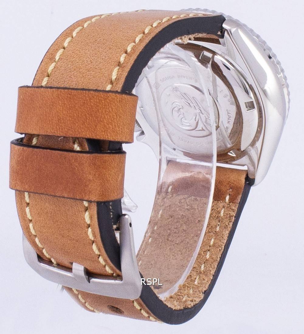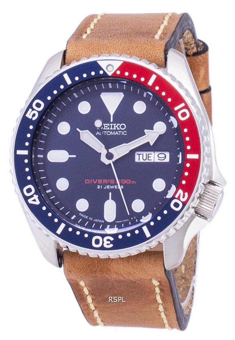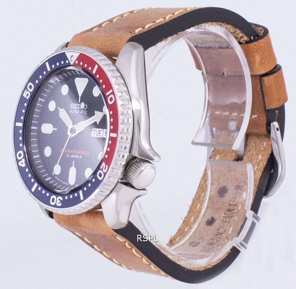 Seiko Automatik SKX009J1-LS17 Diver 200M Japan machte braun Leder Armband Herrenuhr