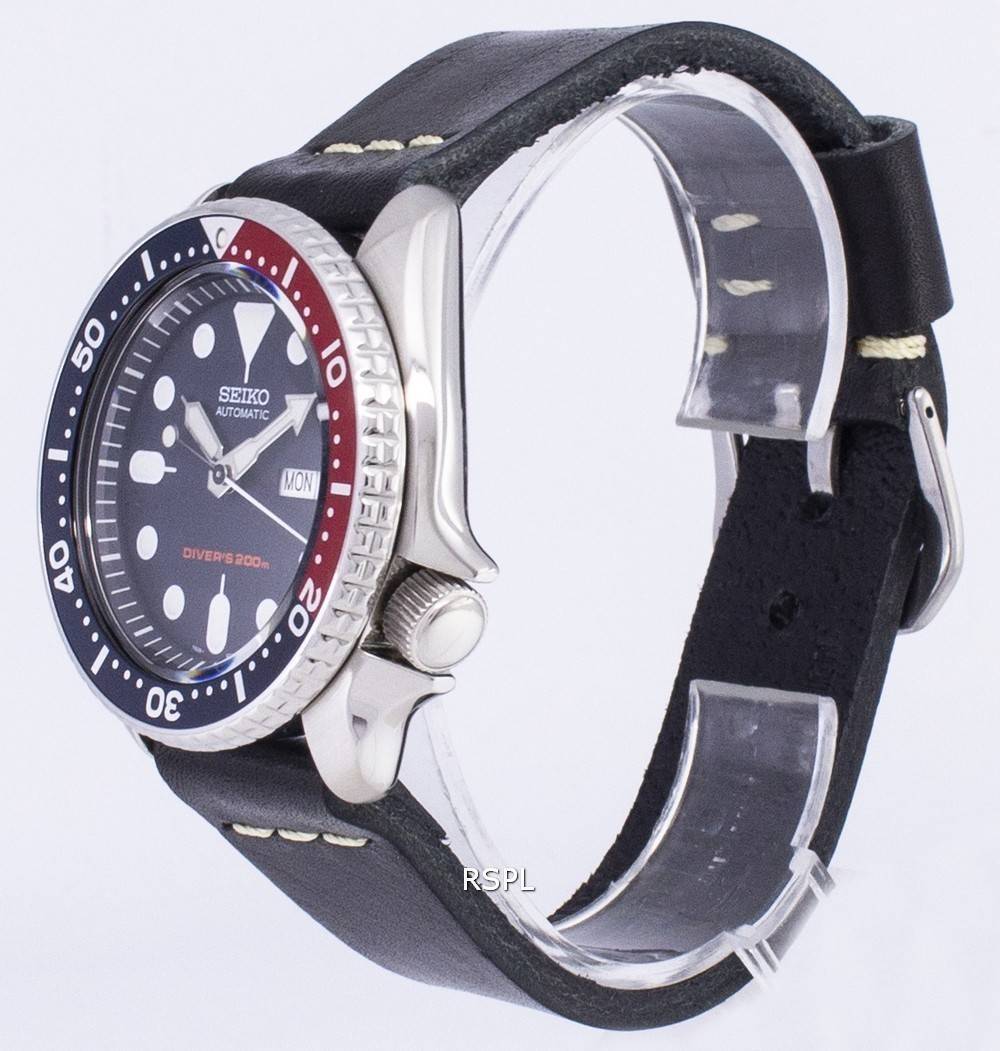 Seiko Automatik SKX009K1-LS14 Diver 200M schwarzes Leder Armband Herrenuhr