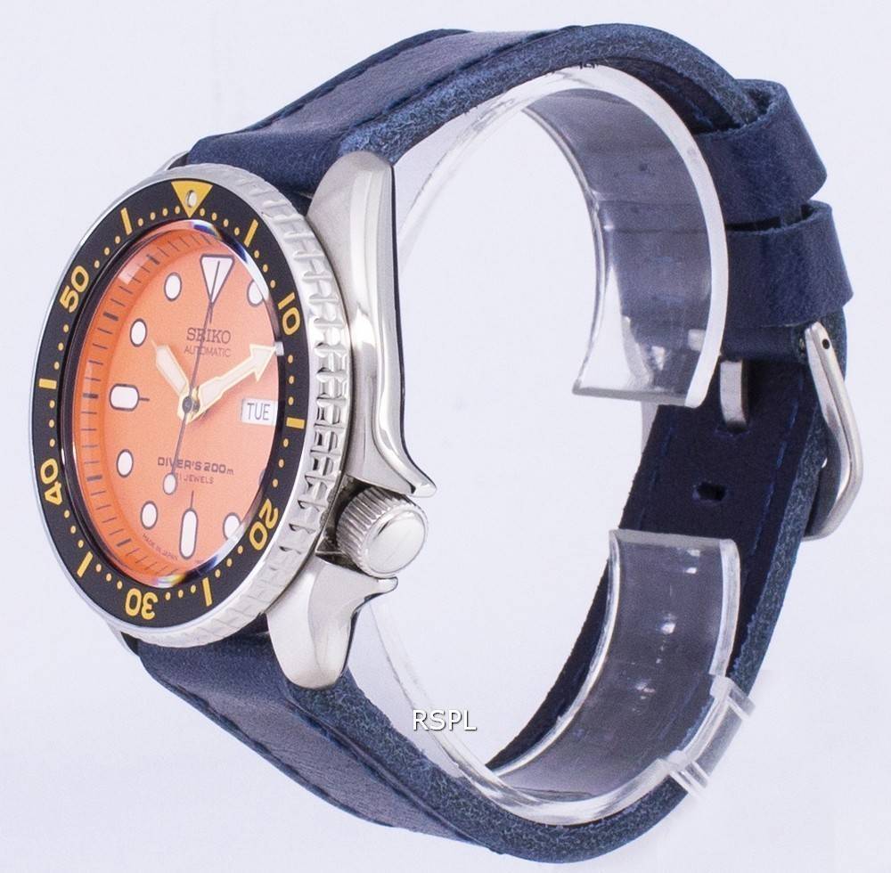 Seiko Automatik SKX011J1 LS13 Diver 200M dunkel blau Leder Armband Herrenuhr