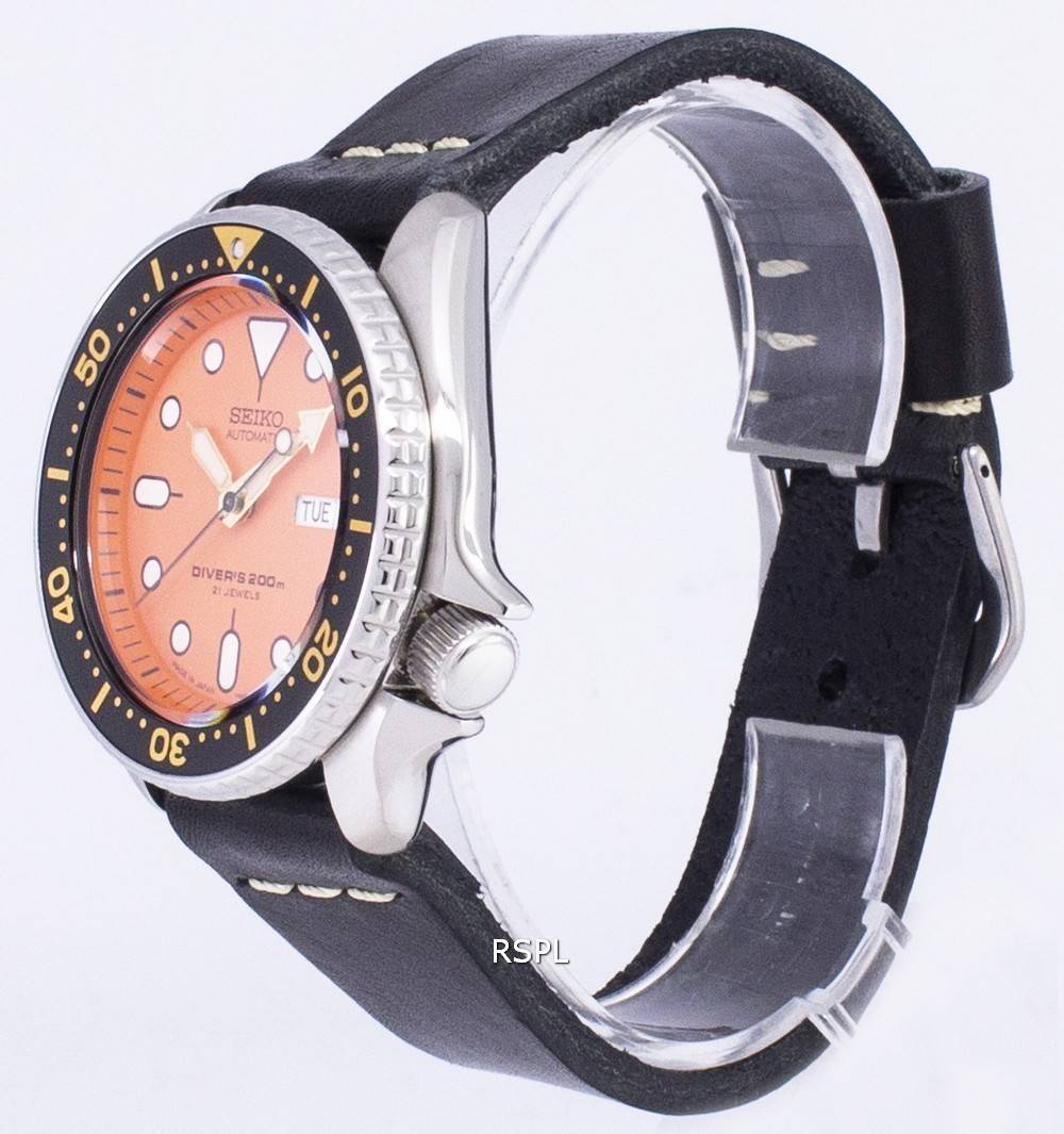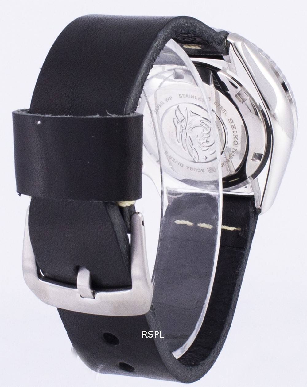 Seiko Automatik SKX011J1-LS14 Diver 200M Japan hergestellt aus schwarzem Leder Armband Herrenuhr