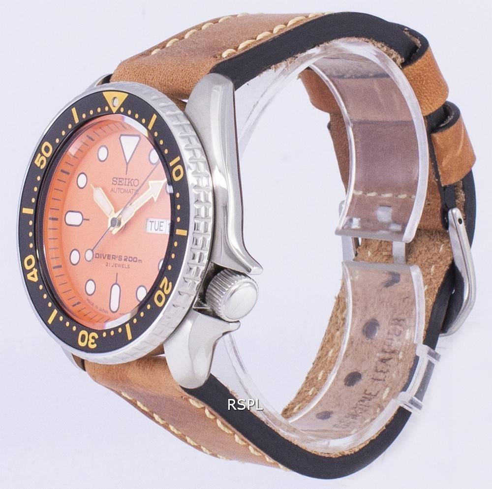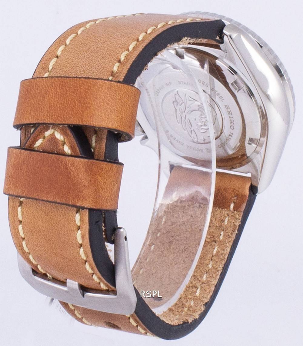 Seiko Automatik SKX011J1-LS17 Diver 200M Japan machte braun Leder Armband Herrenuhr