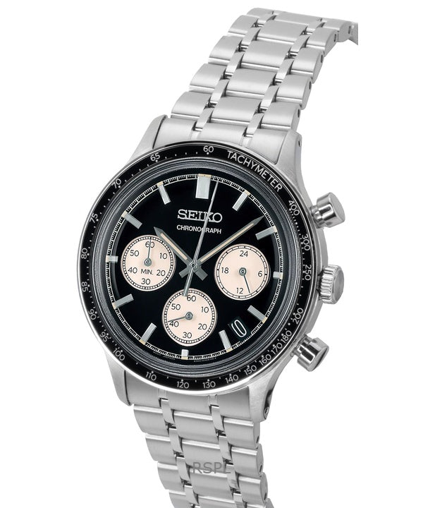 Seiko Chronograph Edelstahl Schwarzes Zifferblatt Quarz SSB479P1 Herrenuhr