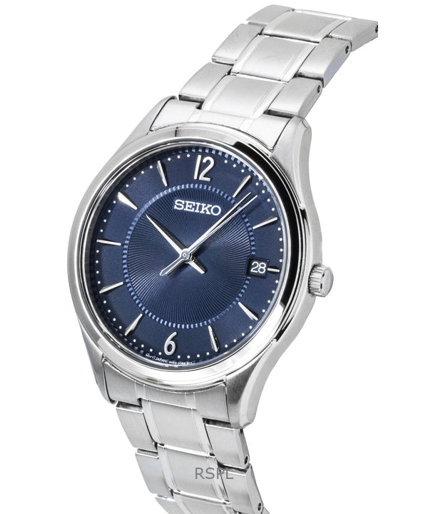 Seiko Classic Herrenuhr aus Edelstahl mit blauem Zifferblatt, Quarzwerk, Modell SUR419P1, wasserdicht bis 100 m
