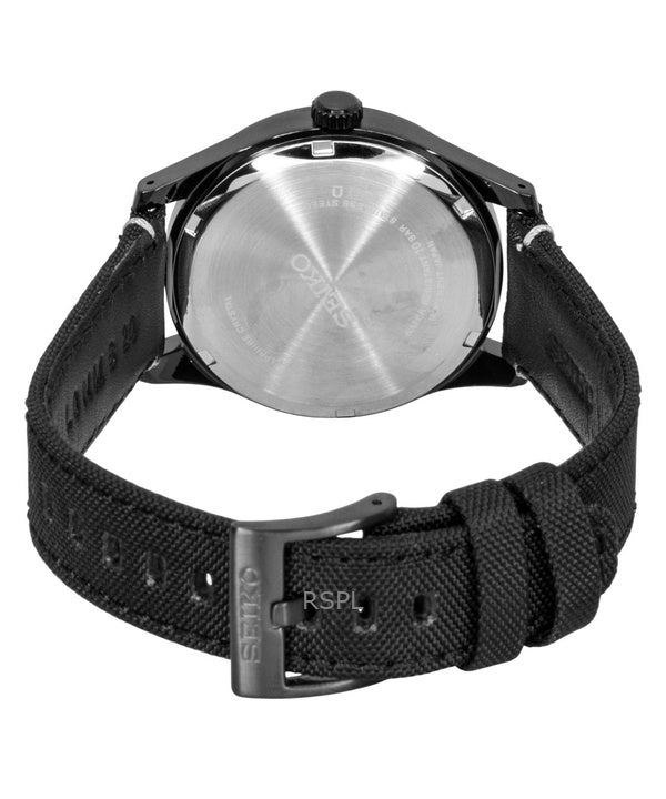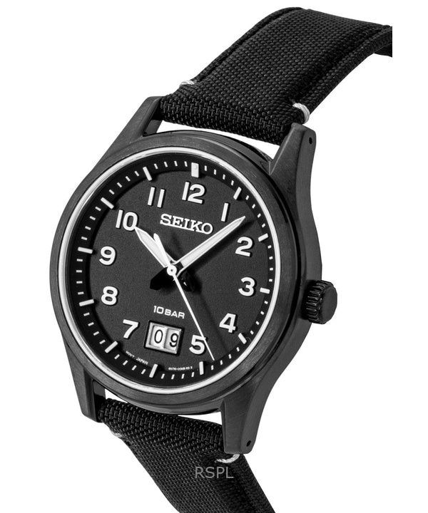 Seiko Classic Herrenuhr mit Nylonarmband, schwarzem Zifferblatt, Quarzwerk, Modell SUR571P1, wasserdicht bis 100 m
