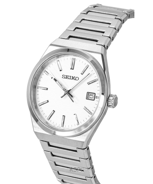 Seiko Conceptual Herrenuhr aus Edelstahl mit weißem Zifferblatt, Quarzwerk, SUR553P1, wasserdicht bis 100 m