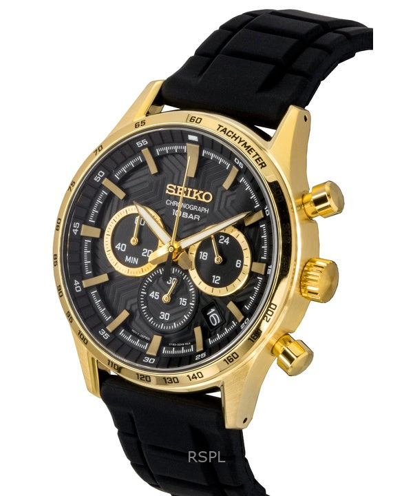 Seiko Sport Chronograph Silikonarmband Schwarzes Zifferblatt Quarz SSB446P1 100M Herrenuhr