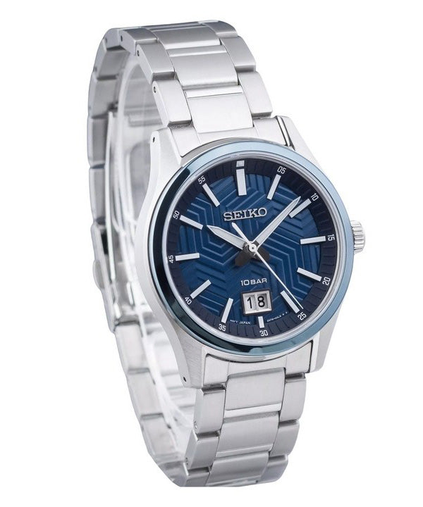 Seiko Sports Edelstahl blaues Zifferblatt Quarz SUR559P1 100M Herrenuhr