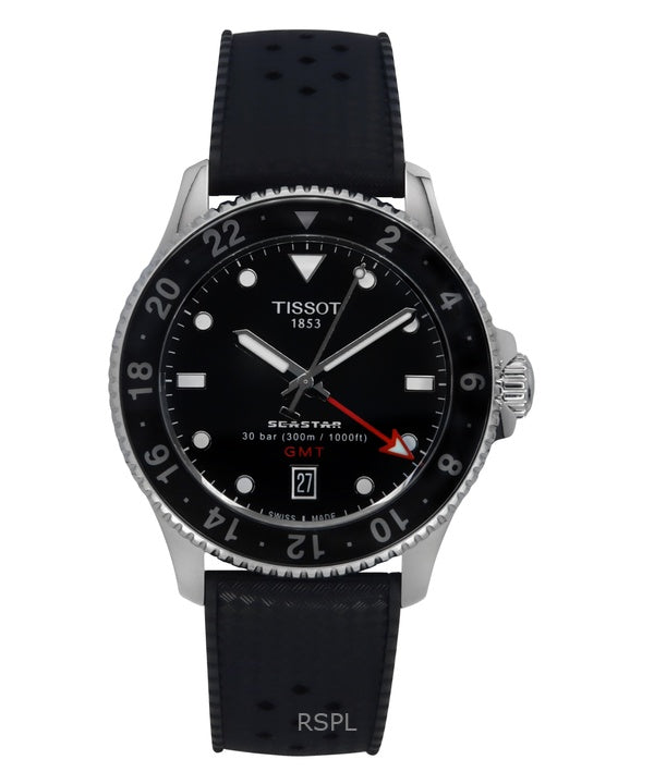 Tissot Seastar 1000 GMT Kautschukarmband Schwarzes Zifferblatt Quarz Taucheruhr T120.852.17.051.00 300M Herrenuhr