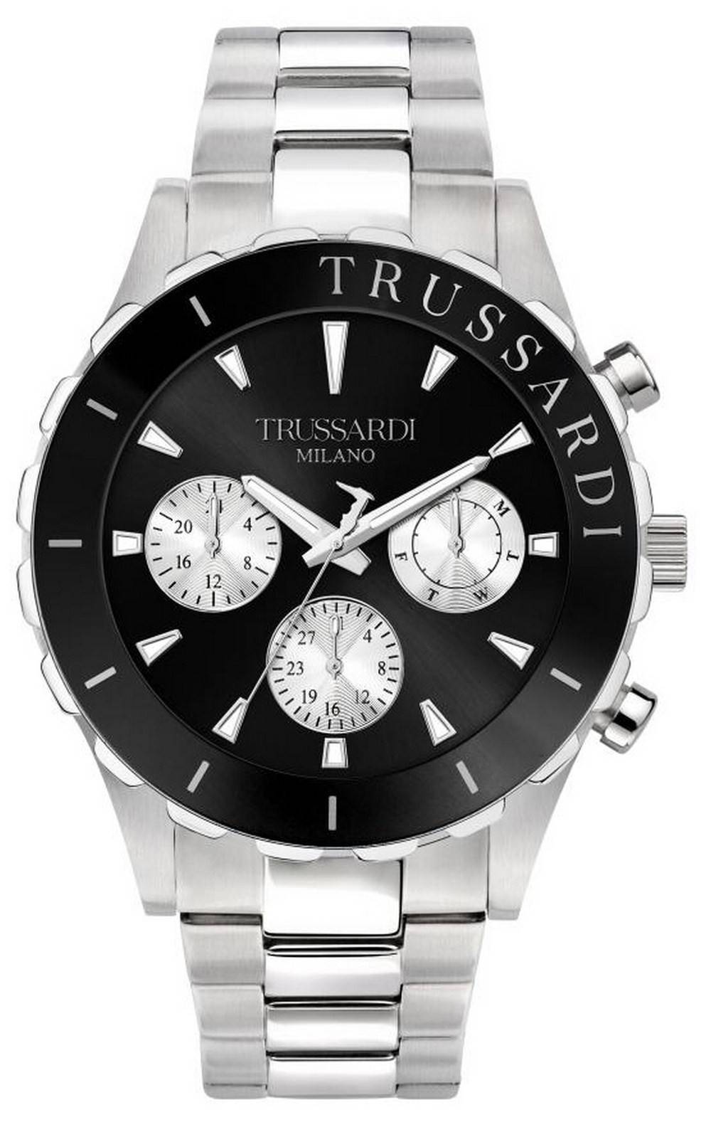 Trussardi T-Logo Schwarzes Zifferblatt Edelstahl Quarz R2453143004 100M Herrenuhr