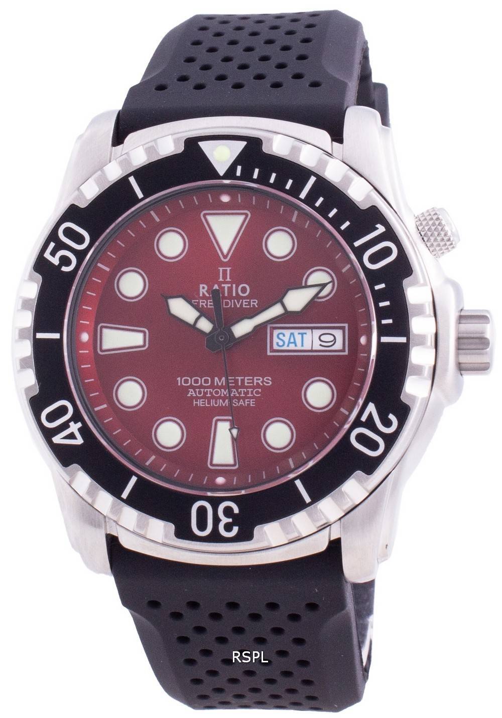 Verhältnis Free Diver Helium-Safe 1000M Saphir Automatik 1068HA90-34VA-RED Herrenuhr