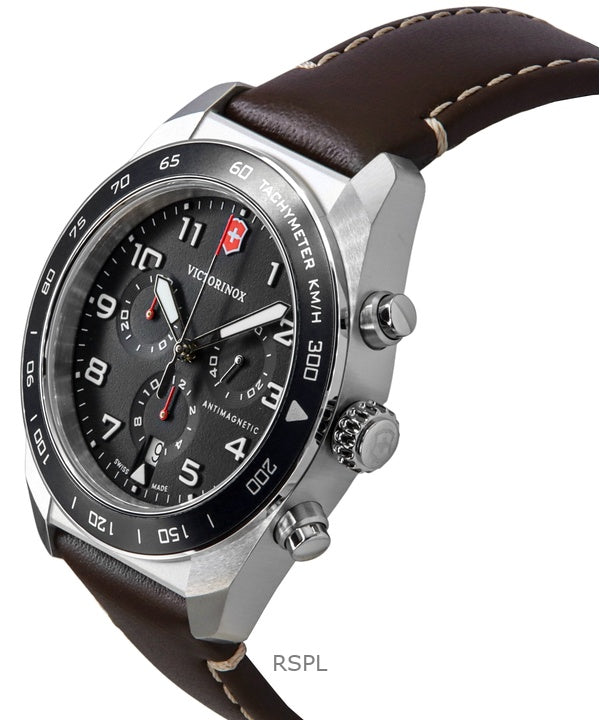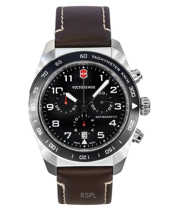 Victorinox Swiss Army Chronograph Lederarmband Schwarzes Zifferblatt Quarz 242046 100M Herrenuhr